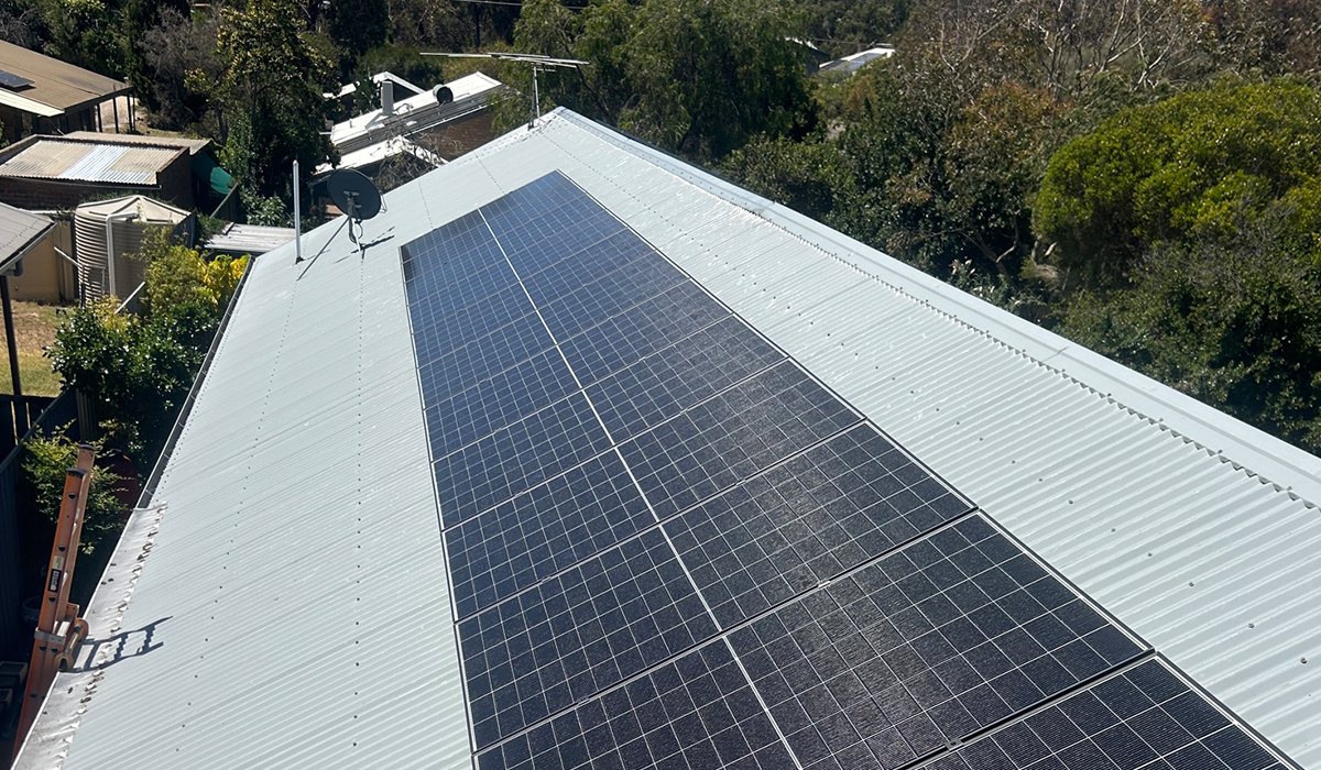 The system also includes a Sungrow SBH200 battery, providing solar battery storage to maximise self-consumption and reduce reliance on the grid. A concrete slab, fibre cement backing, and protective bollard were installed to ensure the battery setup is safe, secure, and built to last.